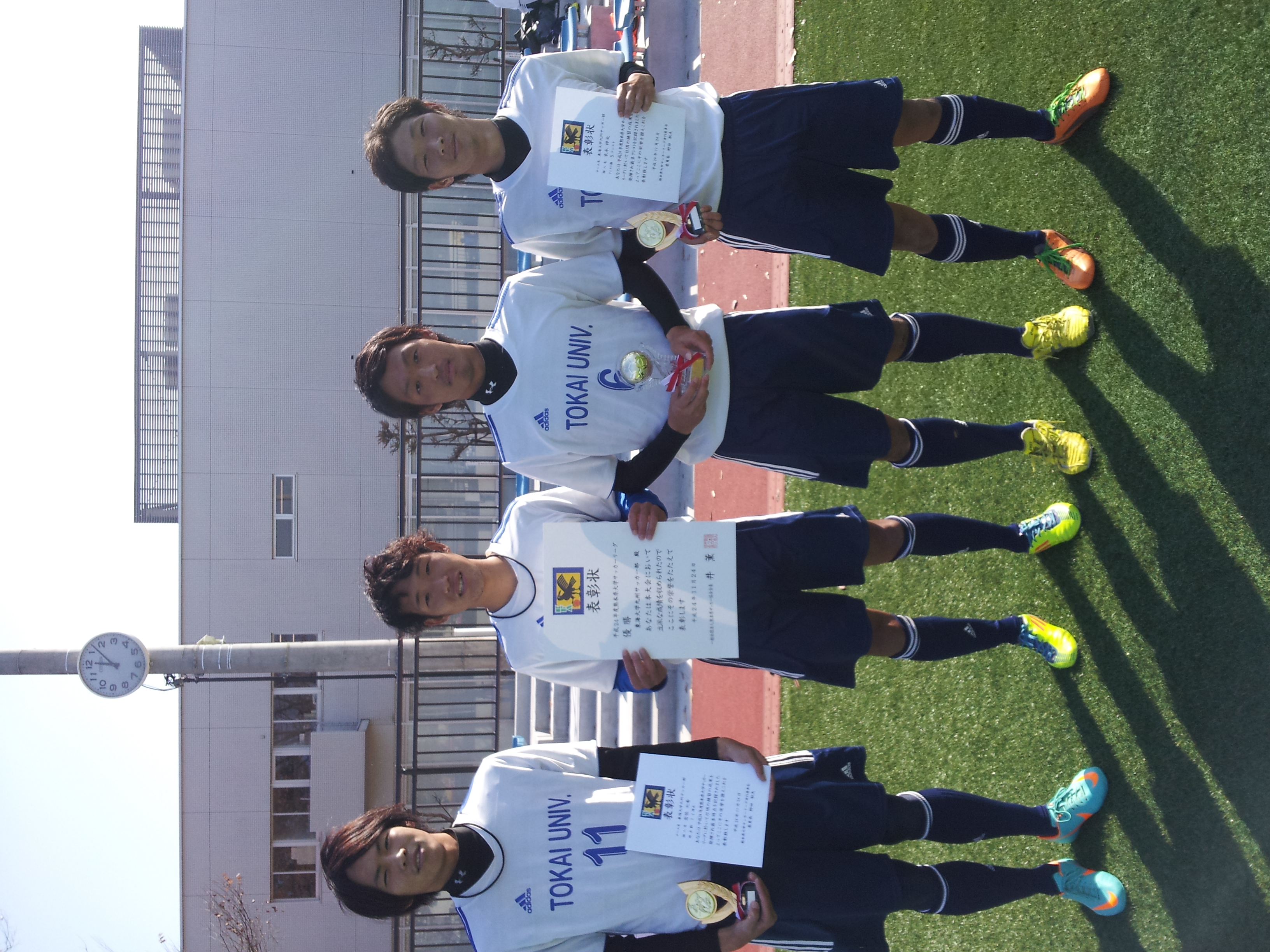 アシスト王に輝いた2年生、末永翔大。(写真右端) 本人もびっくりの受賞です。