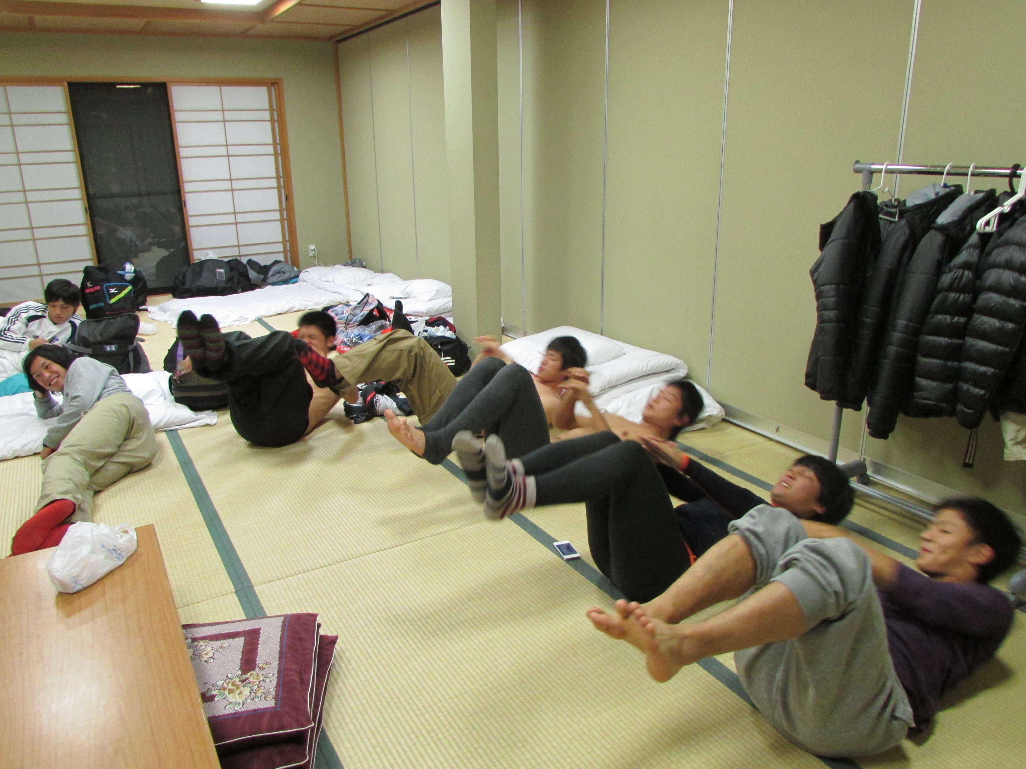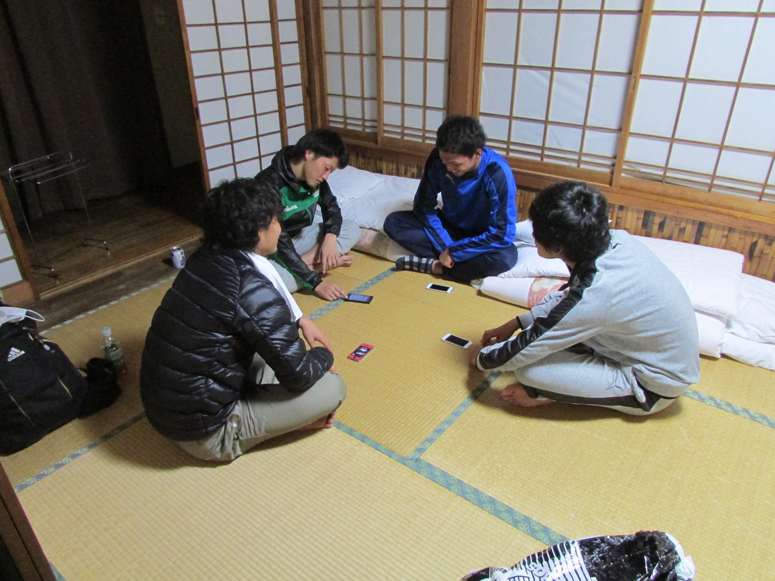 選手たちは夕食後、各部屋でミーティング、あるいはミーティングルームにて映像による互いのイメージの確認を行ったり、筋トレを行ったりと、それぞれの時間を過ごしております。