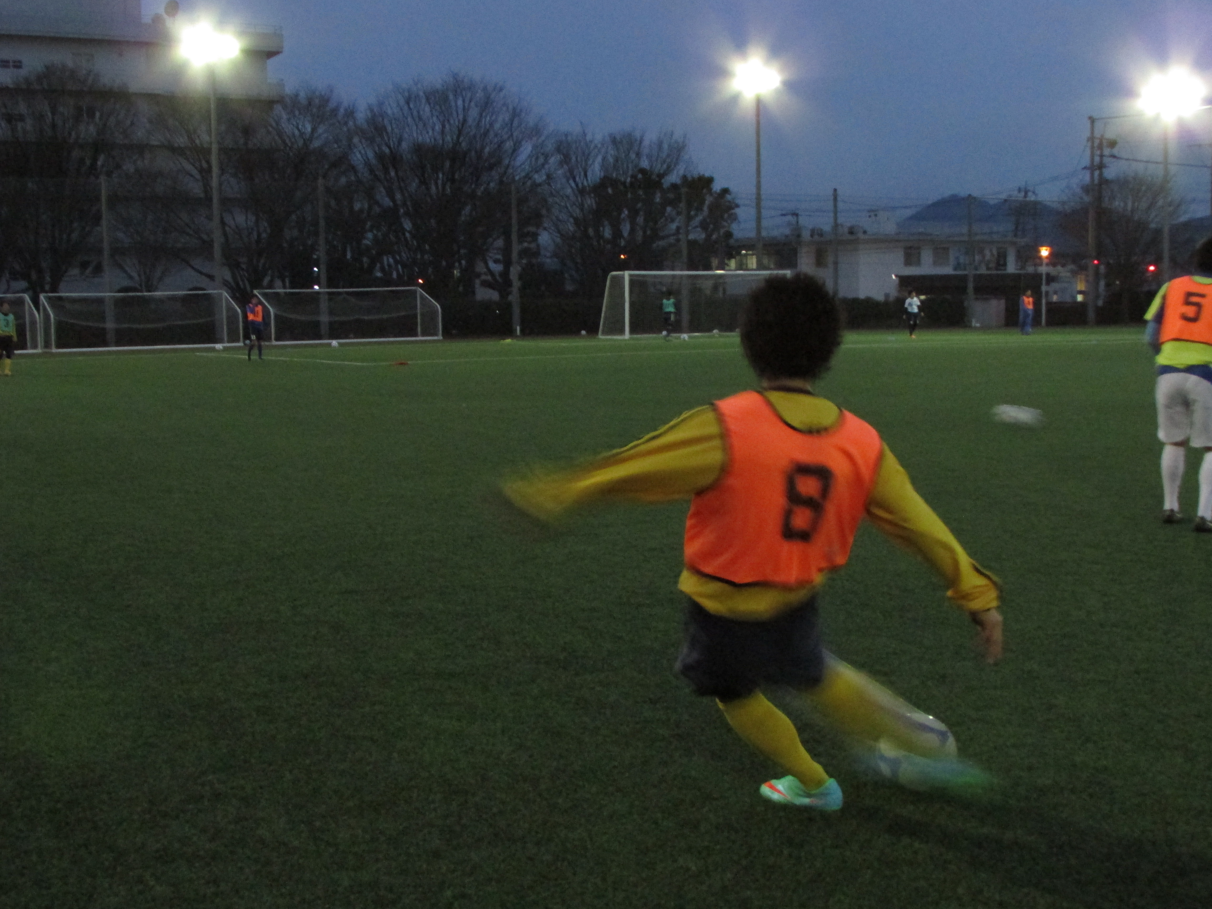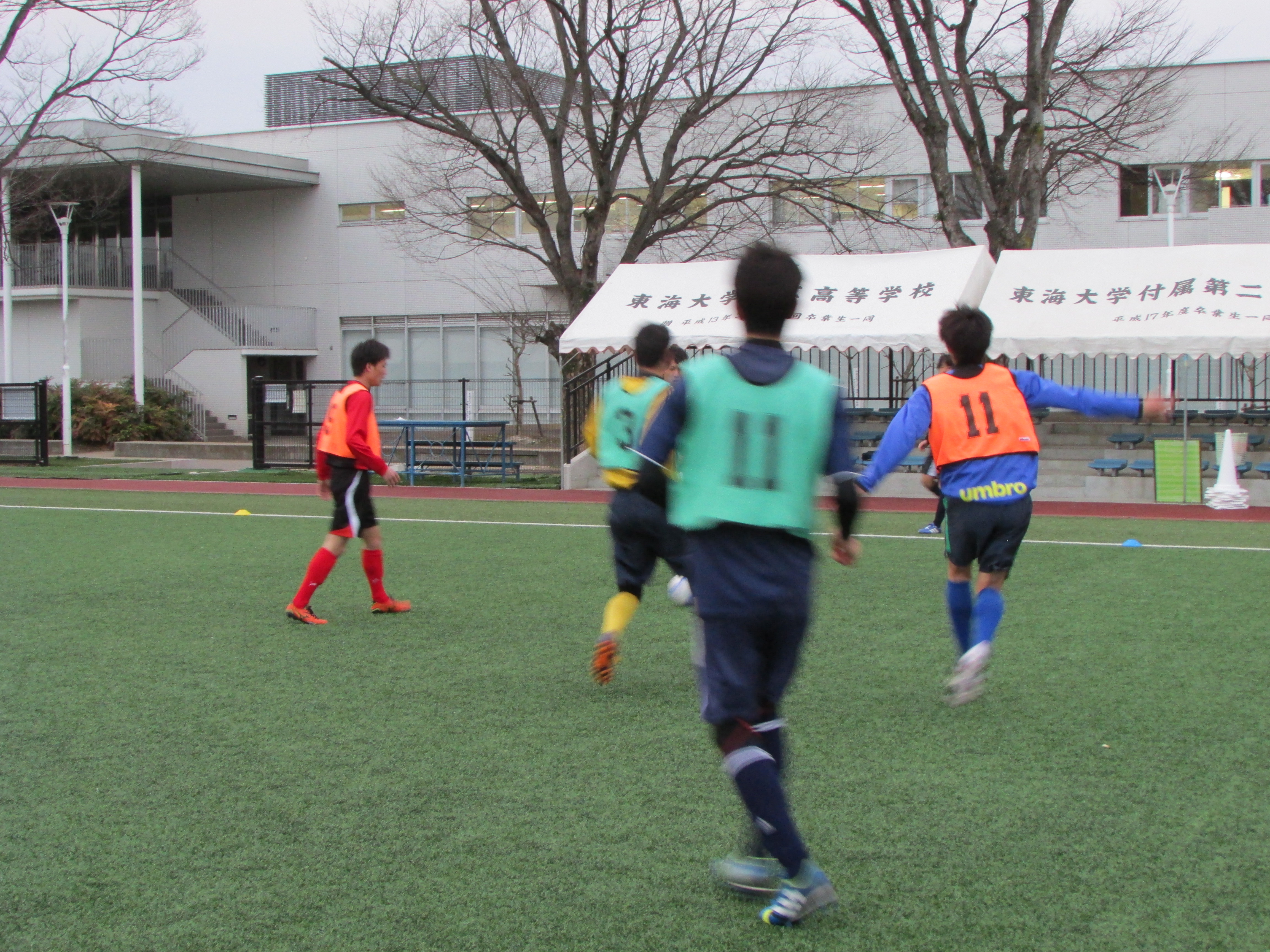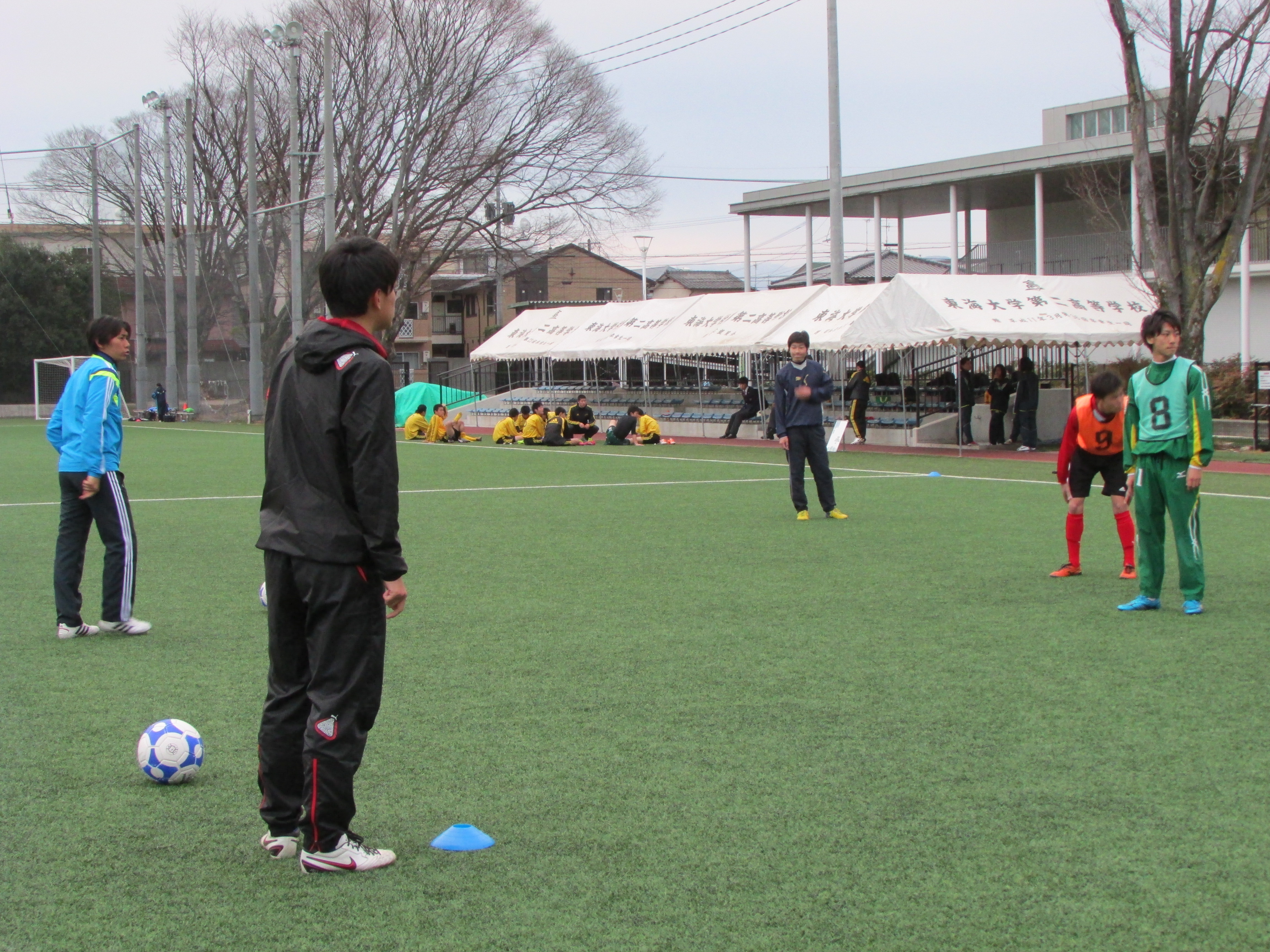 守備時の自分の動きと味方の動かし方、攻撃でのコンビネーションなど様々な確認を行いながら、チーム全体での攻め上がりができるようTRに打ち込んでいました。