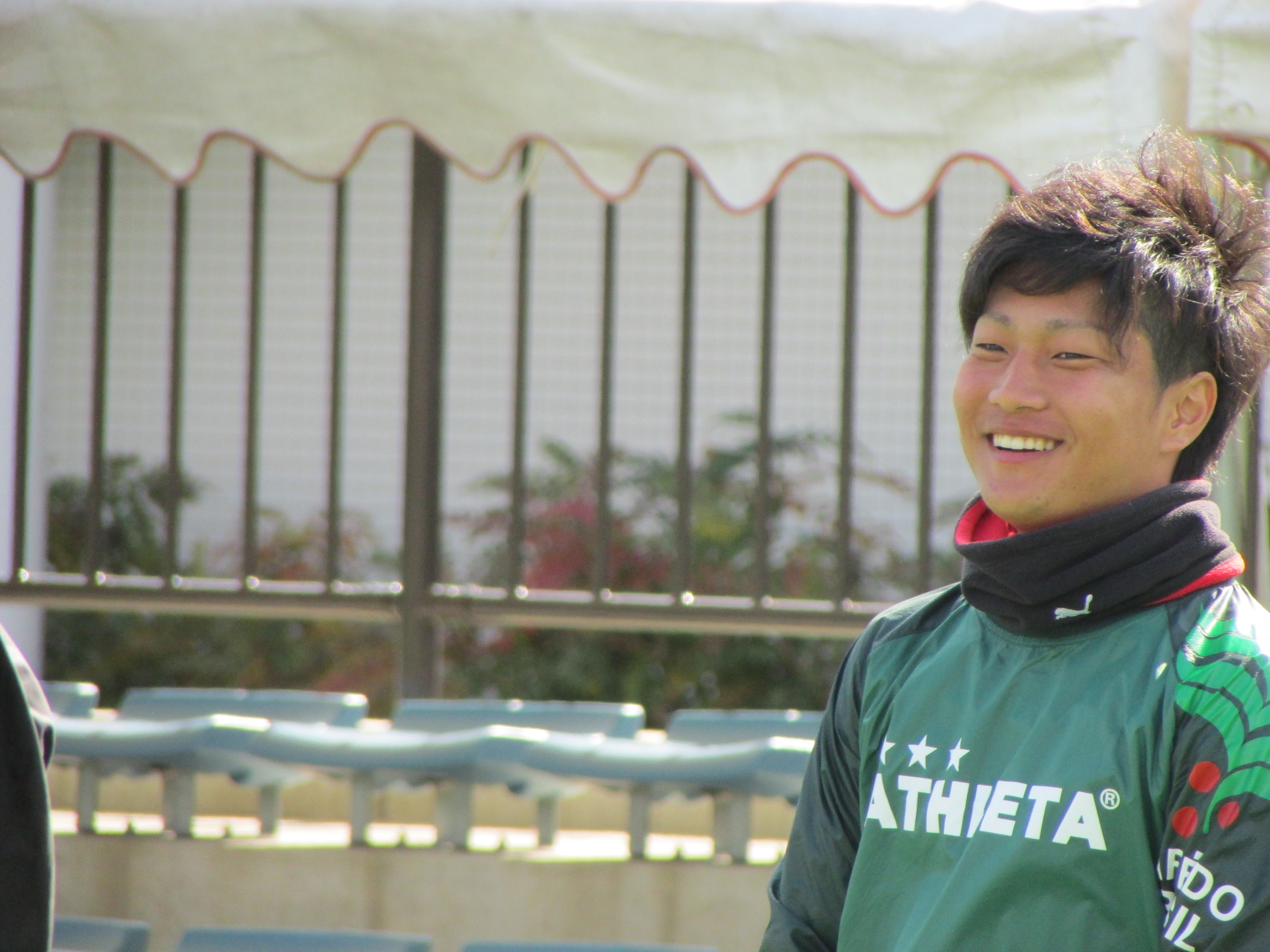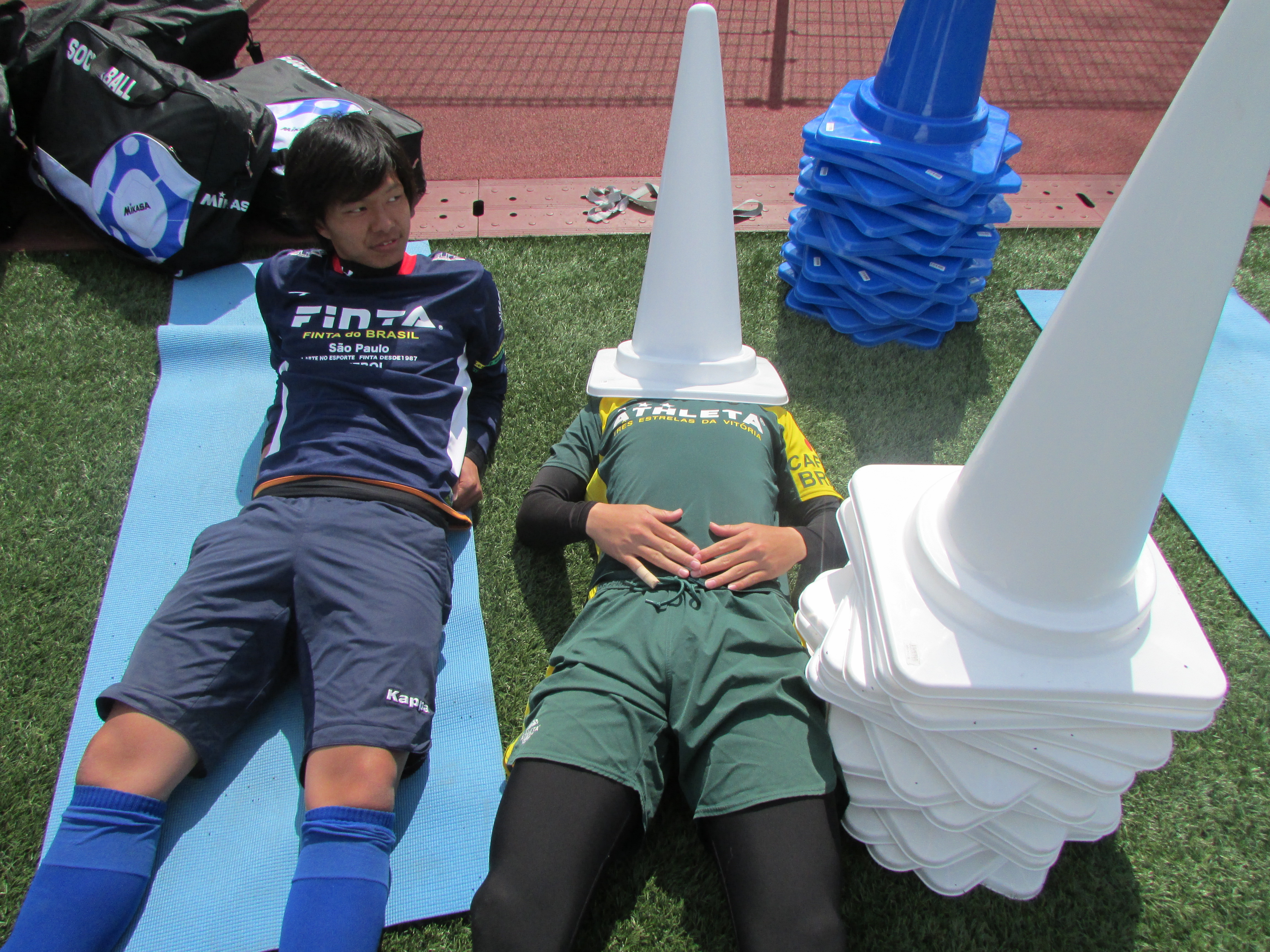 サッカーテニスを行っている際、選手たちは非常に良い笑顔を見せていました。