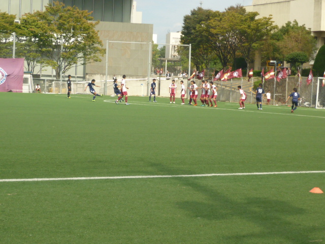 前半のうちに追いつこうと攻撃をしかけますが、相手のDFラインにことごとくはじかれてしまい、0-1の状態でハーフタイムに入ります。
