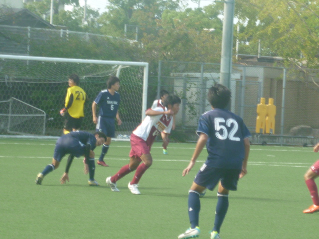 その後も福岡大学に決定機を何度もつくられる場面がありましたがGK岩佐を中心にしっかりと守り抜き、試合終了間際にゴール前で立て続けにFKを獲得し得点チャンスを迎えましたが決めきれず、3-3の同点で試合終了となりました。
