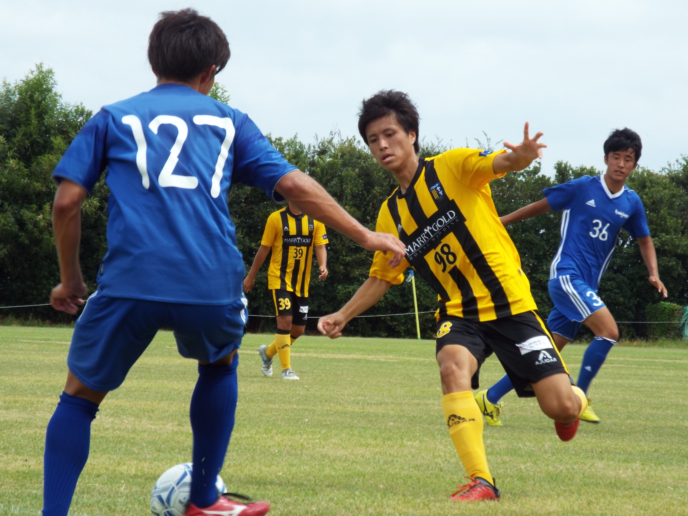 前半終了間際に垣添がシュートを決め
