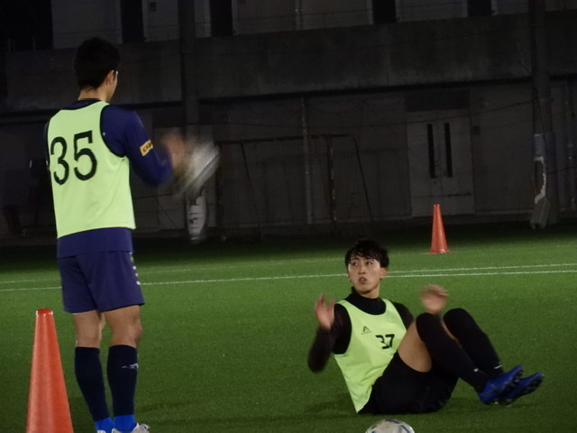 本日はまず、トレーナーの立石さんのトレーニングをやったあと、ボールを使った練習を行いました。