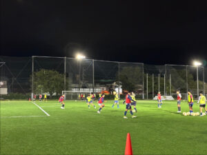 今日は夕方トレーニングでした。最初にジョグを2周いれ、ラダーでアップを行いまたし。次に、2対2プラス3サーバーでポゼッションを行いました。TR1では、ゴール前の2対2の局面のトレーニングを行いました。TR2では、ハーフコートより少し大きめのコートで11対11プラス4クロスサーバーで攻防を行いました。最後にペナペナ幅で11対11のゲームを行いました。