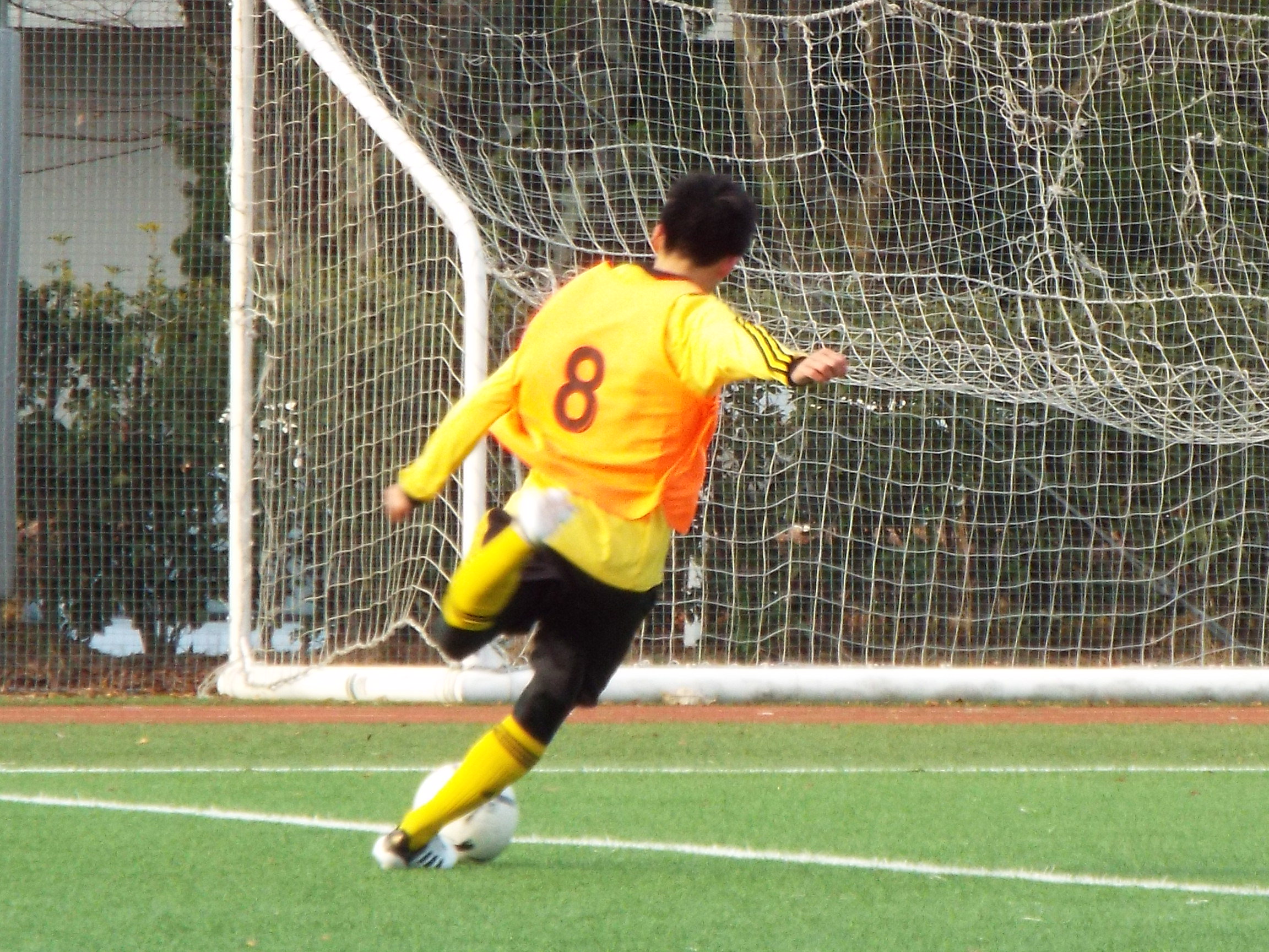 ゴールキーパーの死角を狙って、シュートを打ちました。
