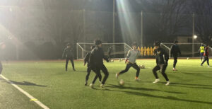 始めに、ジョグを2周入れラダーでアップを行いました。次に、5対2または6対2のボール回しを行いました。TR1では、5対5のポゼッションを行いました。TR2では、4ゴールで11対11の攻防を行いました。最後に、総当たりでハーフコートゲームを行いました。