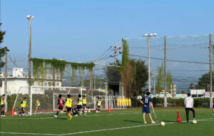 まず始めに、いつも行っているジョギング、ラダーステップをしてからしてから本格的にトレーニングに入っていきました。まず始めに、パスコンをし、4対4+3サーバーのポゼッション、デイリー、2対1、3対2のゴール前攻防をし、最後にスローインスタートのゲームを行いました。今日のトレーニングでは、明日試合ということもあり一人一人が良いコンディションであり、雰囲気も良くトレーニングができていたと思います。このような雰囲気を続けられるように日々のトレーニングで意識して行っていきましょう。明日は、練習試合の後にiリーグもあります。前節は負けているので今回の試合では勝てるように気を引き締めて試合に挑めるようにしましょう。引き続き暑さが続いているので熱中症対策もしっかり行って生活していきましょう。