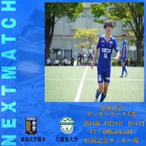 いよいよ、明日が久留米大学との一戦になります。得失点はうちがリードしていますが、勝ち点が並んでいて最下位争いをしている状況です。なので、ここは勝たなければ本当に降格が見えてきてしまいます。ここを引き分けてしますと、我々は一部のチームに前期、どこにも勝てなかったことになるので、後期が思いやられる事態になります。久留米大は去年2部から一緒に上がってきたチームです。